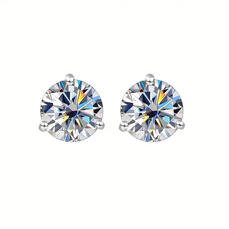 3 Prong Moissanite Stud Earrings (1 Carat)
