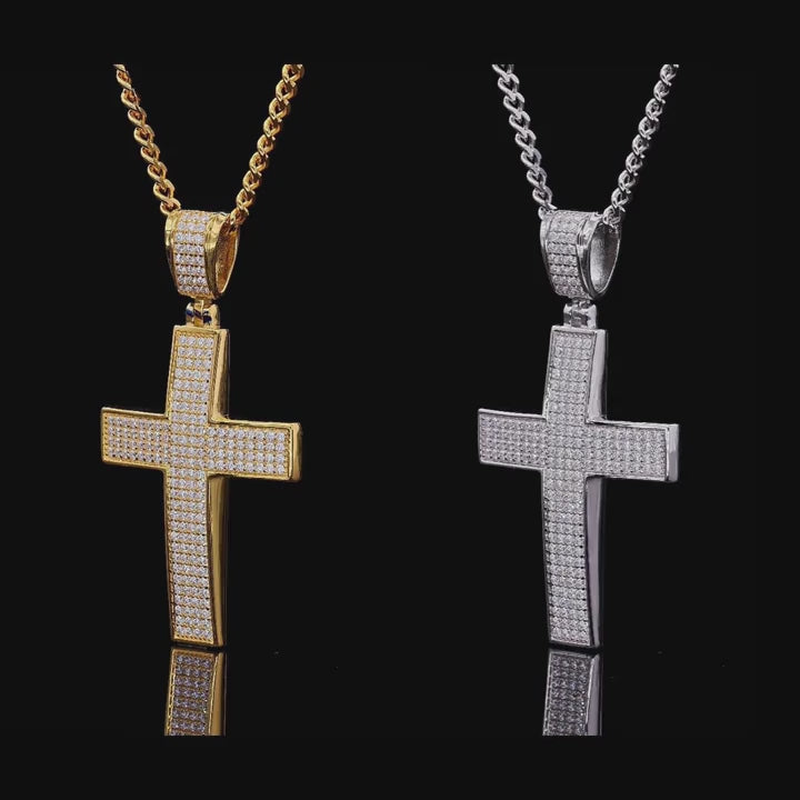 925 Silver Large Iced Cross Pendant 2CT Moissanite (Gold Plating Available)