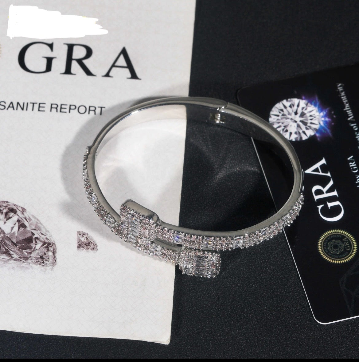 The perfect bangle bracelet to make any of your outfits look better! A great to wear for a nice flashy look The stones will shine beautifully and pass diamond testers! As well it will be very durable and not get dull or even scratched over time; the shine will last a lifetime!